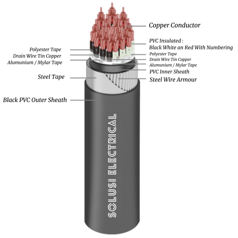 Kabel berlapis PVC tebal, cocok ditanam langsung ke tanah.