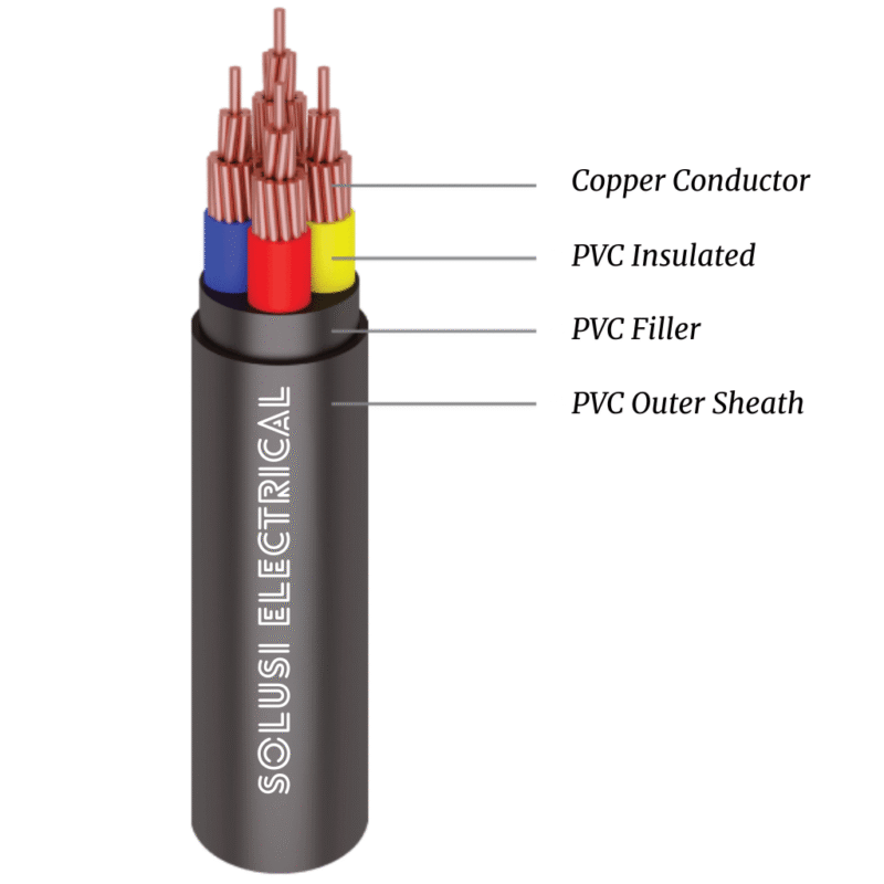 – Isolasi: PVC atau XLPE sesuai tipe dan standar SNI/IEC yang berlaku.